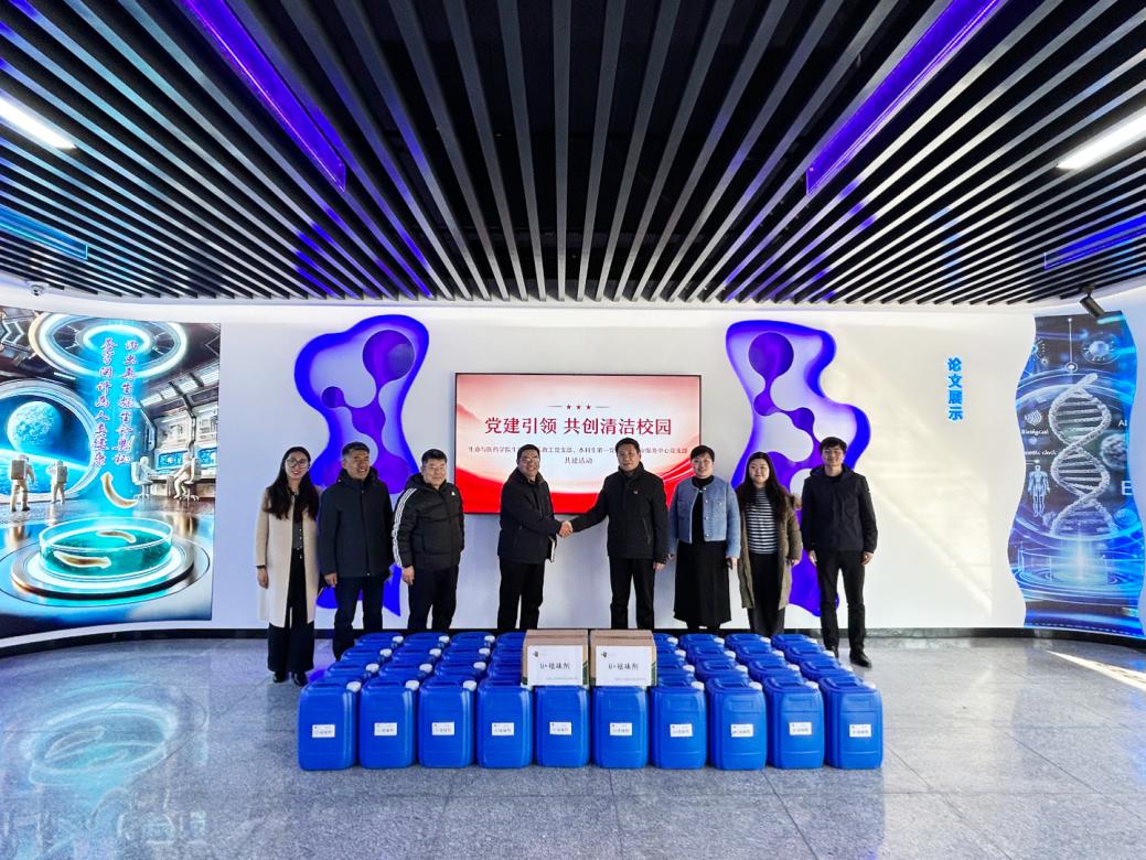 1月8日上午,“党建引领·共创清洁校园”支部共建活动暨“生物酶消毒祛味剂”捐赠仪式在13号教学楼270会议室举行。学院党委书记王光坊、学术副院长徐佳宁及后勤管理处副处长、物业服务中心党支部书记高名亮等人员参加活动。