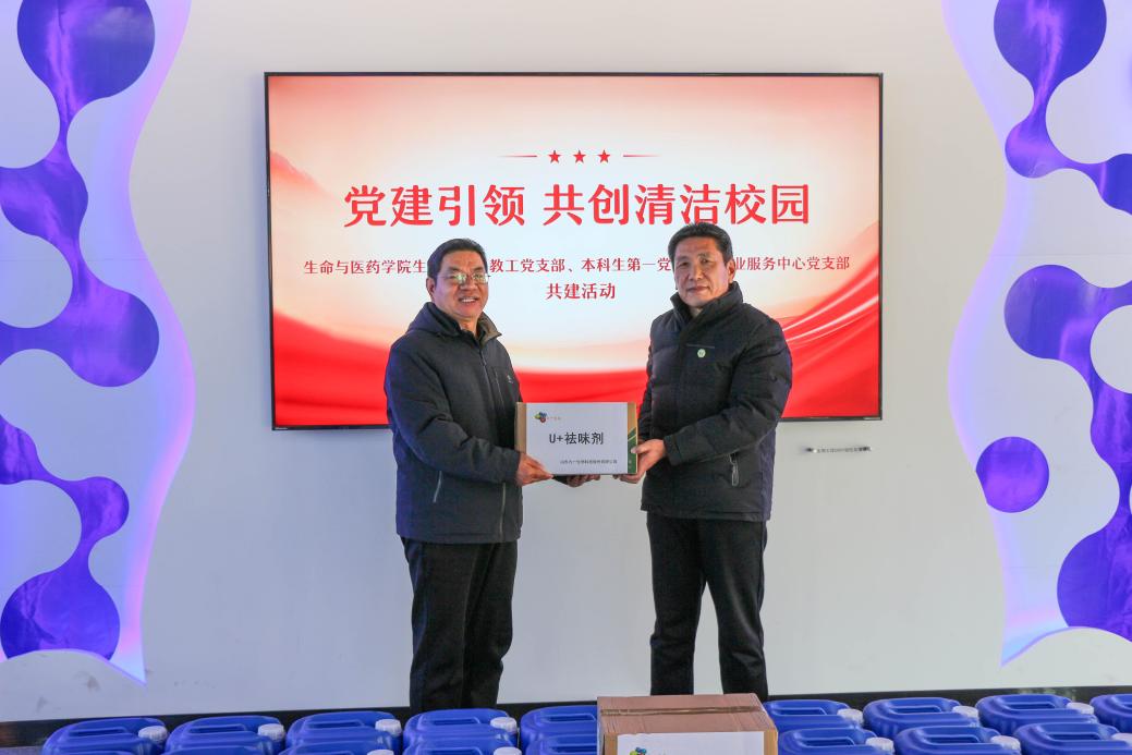 1月8日上午,“党建引领·共创清洁校园”支部共建活动暨“生物酶消毒祛味剂”捐赠仪式在13号教学楼270会议室举行。学院党委书记王光坊、学术副院长徐佳宁及后勤管理处副处长、物业服务中心党支部书记高名亮等人员参加活动。