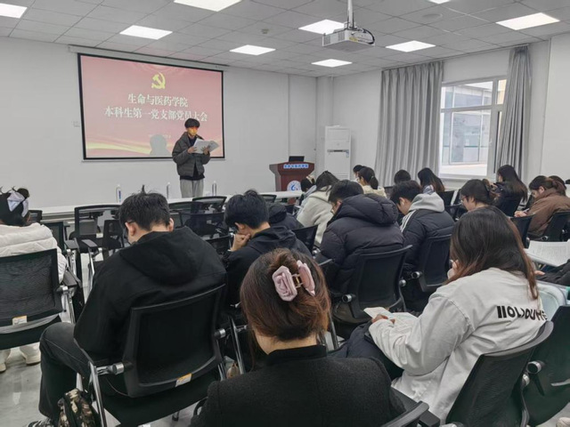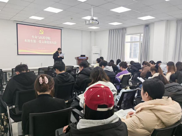 11月27日下午,生命与医药学院本科生第一党支部在13号教学楼215教室召开接收预备党员大会,讨论李梦阳等17名同志的入党事宜。党支部书记陈颖洁主持会议,支部全体党员参会。
