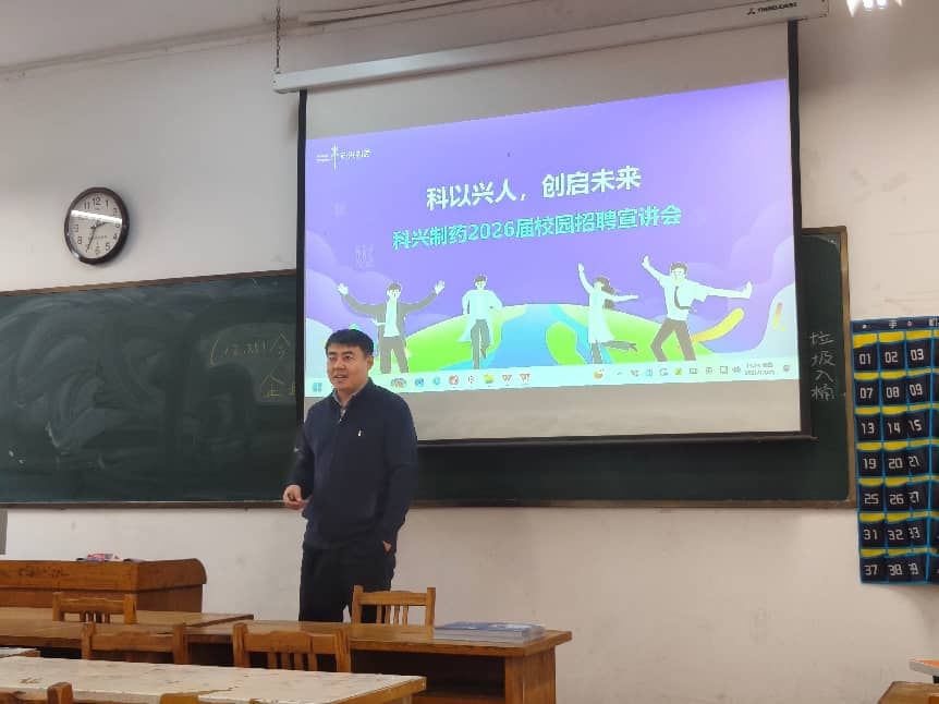 12月25日上午,科兴制药学院专场招聘活动在13教201室顺利举行,科兴制药人力资源负责人王晓鑫、校园招聘经理王常江应邀来访。毕业班辅导员翟静涛主持,2022级部分学生参加。