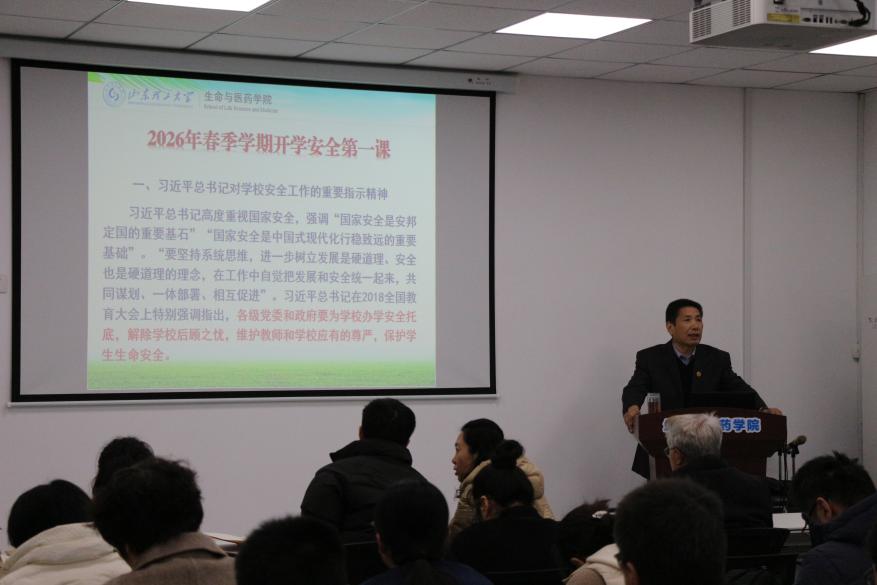 2月28日上午,学院党委书记王光坊在13号教学楼215报告厅为全体教职工讲授2026年春季学期开学安全第一课,集体学习习近平总书记对学校安全工作的重要指示精神,传达各级安全工作部署要求,就抓实安全确保稳定提出了具体要求。