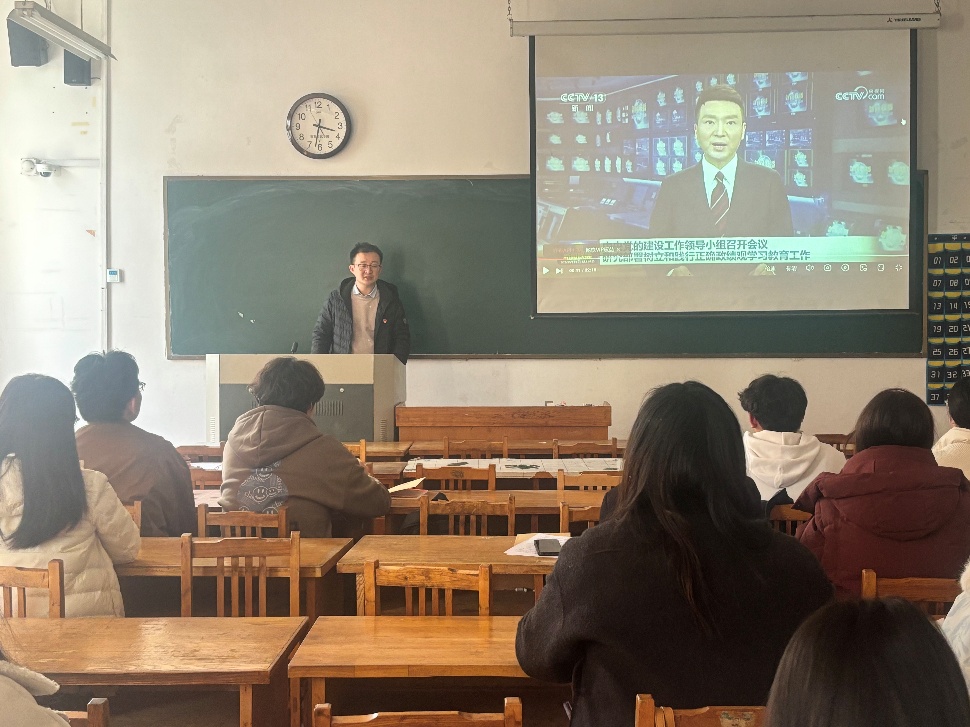 3月12日下午,本科生第二党支部召开全体党员大会,集体观看学习了央视频道关于“中央党的建设工作领导小组召开会议研究部署树立和践行正确政绩观学习教育工作”新闻报道视频资料,传达学习学院党委关于开展学习教育的实施方案,全面启动支部树立和践行正确政绩观学习教育。