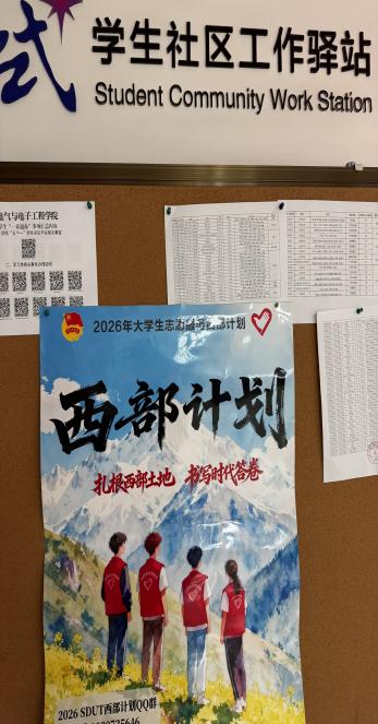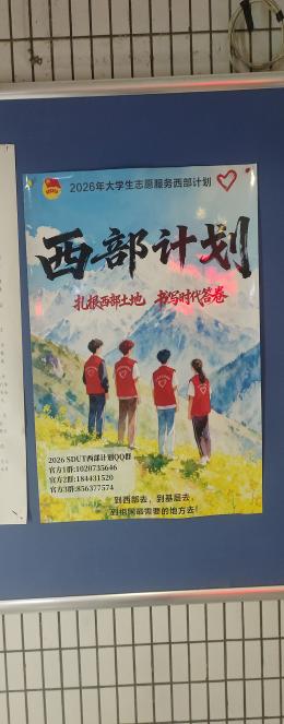 据悉,为帮助更多毕业生更加全面准确了解“西部计划”有关动态,学院除组织专场宣讲活动外,还积极依托微信公众号等及时转发有关推文,在学院宣传栏、宿舍等场所张贴宣传海报,营造浓厚氛围。