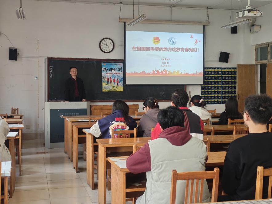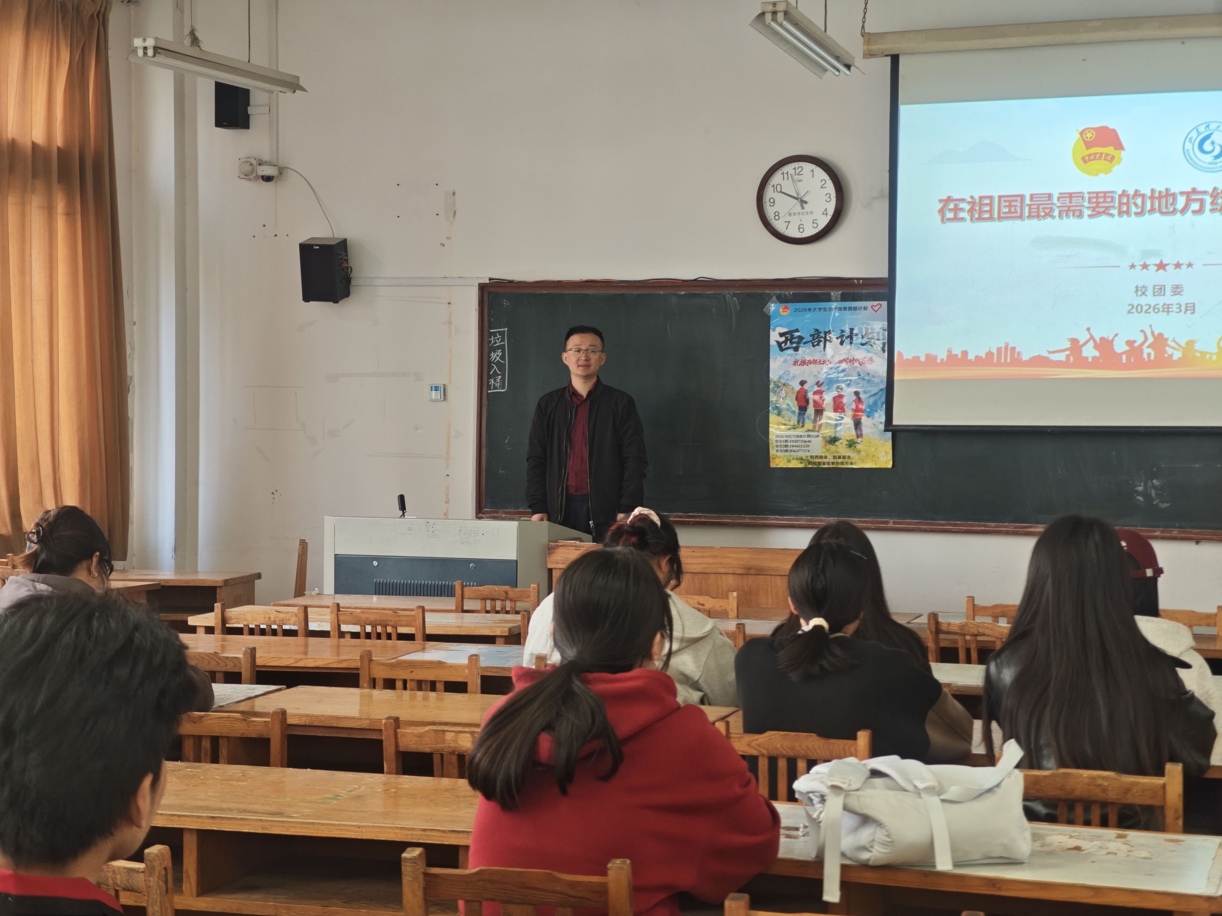 3月25日,学院在13号教学楼206室开展“西部计划”专题宣讲活动,辅导员翟静涛担任主讲。部分2022级毕业生参加活动。