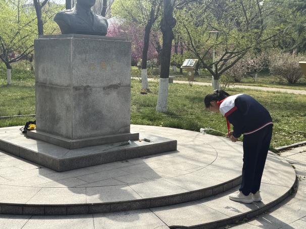 上午9时30分,活动在冯思广纪念广场正式开始。春日的校园松柏苍翠,冯思广烈士的纪念雕塑在晨光中显得格外庄严肃穆。全体同学身着整齐校服,在纪念广场前列队肃立。